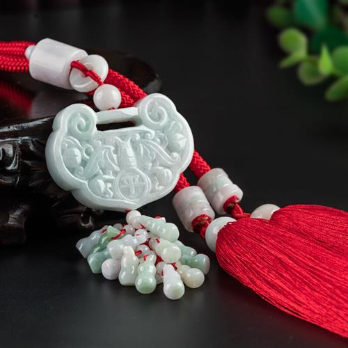 • 汽车挂件翡翠玉饰品高档创意车内挂饰男女车载后视镜保平安锁吊坠